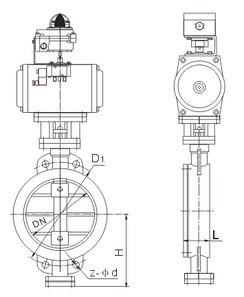 D673H0/16/氣動(dòng)對(duì)夾式硬密封蝶閥主要外形連接尺寸(單位:mm)