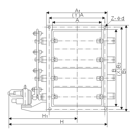電動矩形百葉式調節蝶閥主要外形連接尺寸
