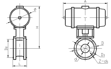產(chǎn)品概述 Q671 氣動對夾球閥是氣動球閥中的一種,是引進(jìn)意大利技術(shù)進(jìn)行國產(chǎn)化設(shè)計而發(fā)展出的新一代超短法蘭距球閥,球芯通道形狀有矩形、V形及O形。該產(chǎn)品具有結(jié)構(gòu)緊湊、體積小、重量輕、安裝方便等特點,可廣泛應(yīng)用在石油、化工、冶金、電站、輕工等領(lǐng)域,對油、水、氣及紙漿或纖維狀流體進(jìn)行自動調(diào)節(jié)或切斷控制。Q671 氣動球閥由氣動雙活塞齒輪齒條執(zhí)行器和超短法蘭距球閥組合而成,閥體部分同“1”電動球閥閥體一樣。氣動活塞執(zhí)行機(jī)構(gòu)分有彈簧式和無彈簧式兩種。故障下要求閥全開或關(guān)閉時配有彈簧式(靠彈簧的恢復(fù)張力復(fù)位),故障下要求保位時,配無彈簧式。它主要由缸體、彈簧、活塞、活塞桿、前后缸蓋、齒條、輸出軸等零部件組成。對兩位開關(guān)閥,需配電磁閥以及行程開關(guān)等;對比例式調(diào)節(jié)閥,需配定位器。 主要連接尺寸