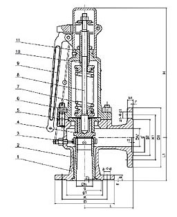 A61H/Y60、A61H/Y-320型彈簧微啟式空壓機(jī)安全閥適用于工作溫度≤200℃的空氣、氨、石油氣等介質(zhì)的設(shè)備和管路上,A61Y60P、A61Y-320P型適用于工作溫度≤200℃含腐蝕性的氣體或液體的的設(shè)備和管路上,作為超壓保護(hù)裝置。 主要外型尺寸和連接尺寸